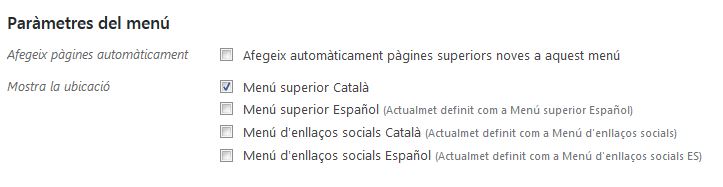 Trobarem les zones disponibles a baix de tot, a l’apartat Paràmetres del menú. Allà marcarem els llocs on volem col·locar el menú que estem editant.